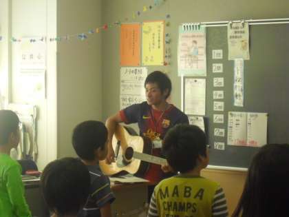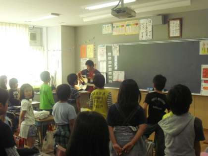 3年3組の音楽です。担任の先生はギターで伴奏。