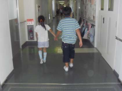 1,2年生はお店は出しませんが先輩たちのお店を回って楽しみます。2年生は1年生と手をつなぎ、ちょっとお兄さん、お姉さんの役目を果たします。