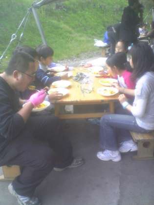昨日の夕飯は飯ごう炊さんでカレーライスを作りました。班の友達と協力して作ったカレーライスはとてもおいしかったです。
