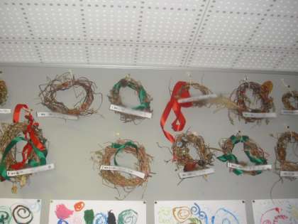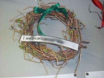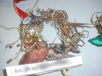 素敵なリースが出来上がりました。さ〜てお家のどこに飾りましょうか。