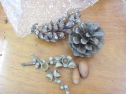 リースに飾るドングリや松ぼっくりも生活科の秋探しの一つです。
