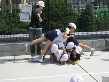 世田谷美術館の方々による美術鑑賞教室の事前授業がありました。「この絵はなんに見えるかな?」絵のイメージを身体を使ってグループで表現しました。どのグループも違って面白い!題名や作者は秘密です。来週の見学のときのお楽しみです。