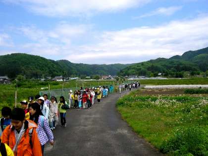 川場最後の日は村めぐりです。出発の時降っていた雨もすぐにあがり、きれいな空気の中、村の様子を見て歩きました。3日目でちょっと疲れ気味でしたが、元気に歩きました。