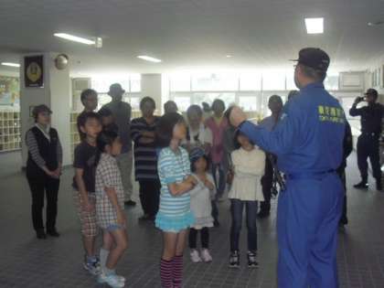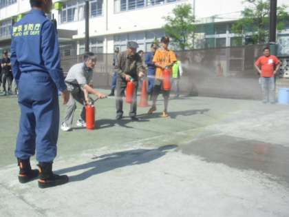 通報訓練や消火器訓練、バケツリレーなど楽しく防災について学びます。