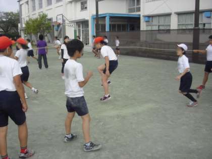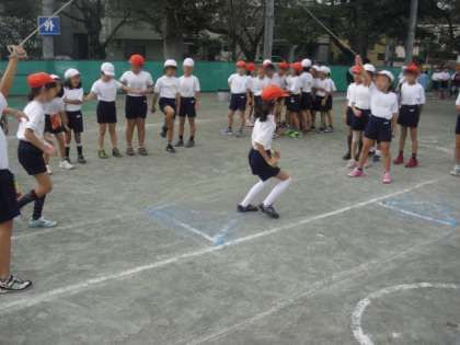 子どもたちは、みんなリズムよくなわをとんでいました。引っかからなくなったり、途切れることなく次々にとんだりと、技術が伸びています。「ハイ!!」「ハイ!!」と声も気持ちも合っています。