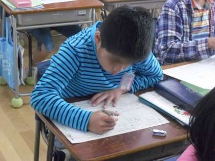 2年生は、かけ算九九の学習を進めています。九九は、生活の中でも様々な場面で活用しています。とても大切な学習です。2年生の子どもたちは、担任の先生にテストをしてもらったり、TTの先生と復習をしたり、かけ算を使った問題を自分で作ったりと、九九のマスターを目指して、張り切って学習を進めています。