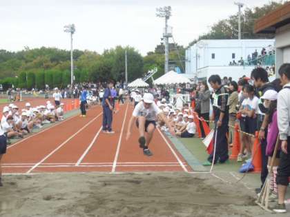 50メートルハードル走のゴールテープ係を気持ちよく引き受けてくれた6年生の働きを、他の学校の校長先生から褒められました。嬉しいです。