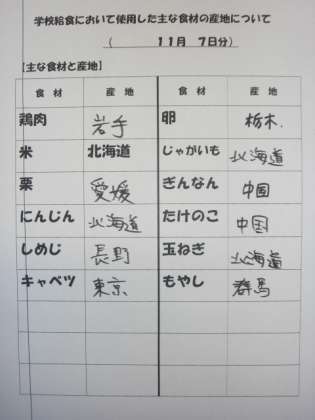 11/7 今日の給食