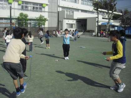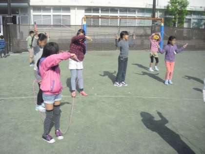 体力づくりの一環として、11月は短なわとびに取り組んでいます。