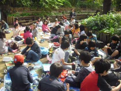 清掃工場の後は、次太夫堀公園です。まずはお弁当をいただきます。お手紙つきのお弁当に大喜びのお友達もいました。(※お手紙とお弁当は別のお友達のものです。)