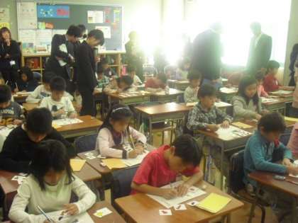 今年度先生になった人たちの研修会です。2年生の鎌田先生が授業者です。国語の「なかまわけをしよう」の学習です。先生の落ち着いた学習の進め方で、子どもたちもしっかり考え学んでいます。教育委員会の方から、子どもたちの落ち着いた学習態度・よく頭を使った活動をお褒めいただきました。鎌田先生の指導も落ち着いていて初任者とは思えないとのお言葉をいただきました。