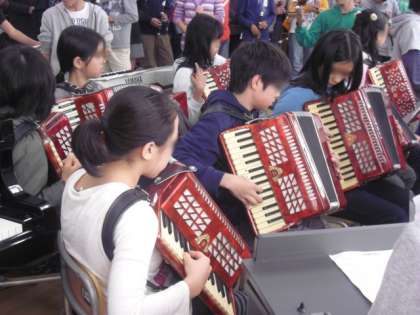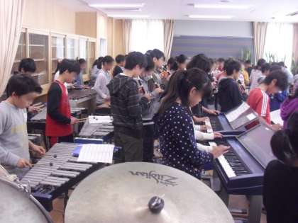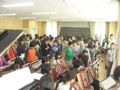 1校時、6年生が音楽室に勢ぞろいし「情熱大陸」の合奏をしていました。