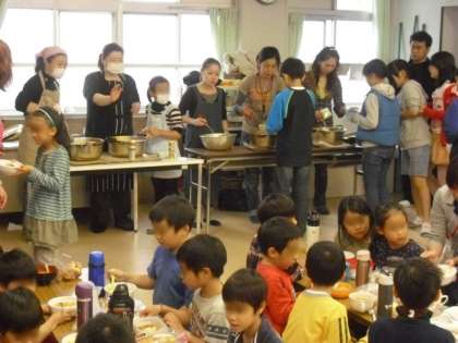お昼は、遊び場開放委員や保護者の方々、安藤先生が作ってくださった温かいミネストローネをたっぷり食べて、元気いっぱいになりました。