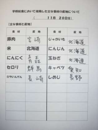 11/20 今日の給食