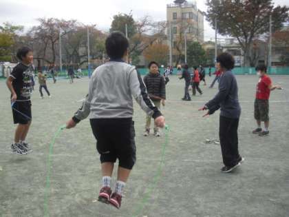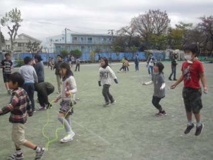 今日は寒い!でも子どもたちは休み時間に元気に外遊びです。
