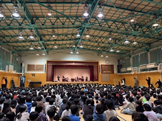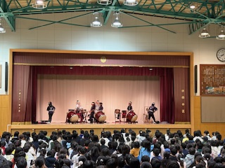 今朝は、ござくらの演奏会がありました。今年は何年ぶりかで全校が一堂に会して演奏を聴くことができました。体中に太鼓のリズムを感じながら演奏に釘付けになっていた子どもたち。