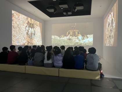 クラスごと班ごとに、午前午後に分かれて、中央防波堤を訪れました。ゴミ処理の方法や、埋め立て処理についての説明動画を見たり、バスの中から中央防波堤の埋め立て処分場の中を見て廻りました。