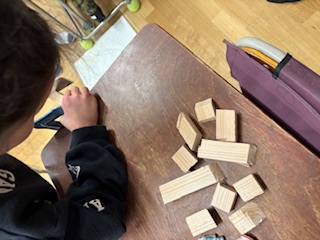 3年生は、初めてのこぎりを使って木工作に挑戦しています。