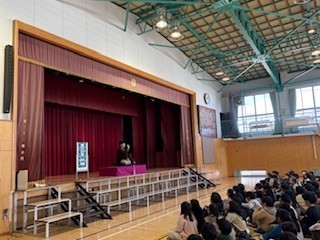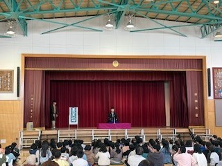 最後に、落語を実演してくださいました。一人で何人もの登場人物を演じ分ける笹丸さんの落語に子どもたちは引き込まれて笑いが何度も沸き上がり、中には笑い転げてしまう子もいるほどでした。日本の伝統文化の面白さに触れることができた貴重な機会となりました。