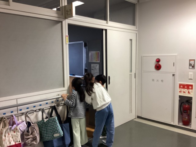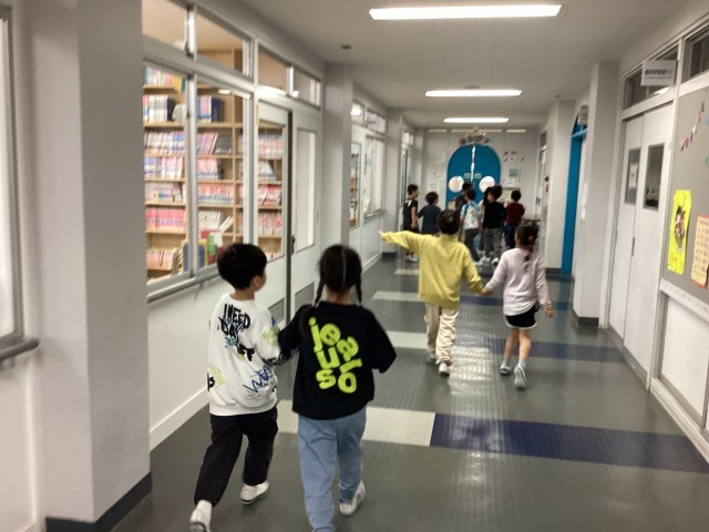 1年先輩の2年生が、1年生を連れて学校探検をしました。
