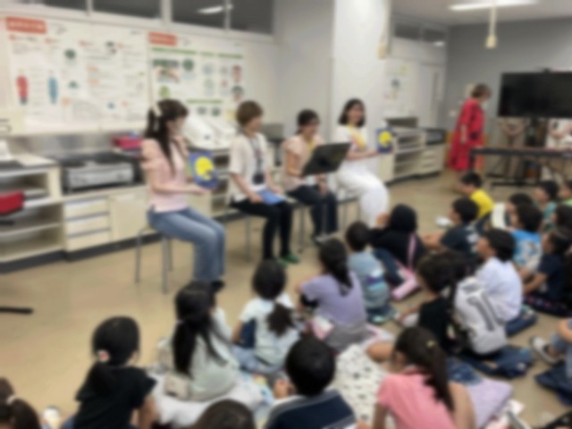 2時間目にDKOの方に楽器や歌を使って絵本の読み聞かせをしていただきました。子どもたちは、いつもと違った読み聞かせに身を乗り出して、楽しそうに見ていました。この日のためにご準備いただいたDKOの皆様、ありがとうございました。