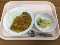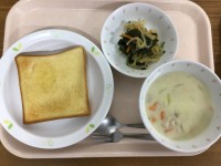 メープルシロップトースト米粉のクリームシチュー野菜とじゃこのサラダ牛乳