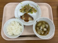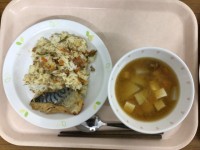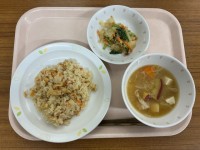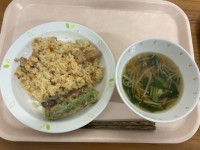 豆入り中華おこわちくわの磯辺揚げ春雨スープ牛乳
