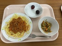 スパゲッティトマトソースバンサンスー巨峰牛乳