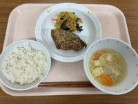 ごはんさわらのごま竜田揚げ和風サラダ塩ちゃんこ汁牛乳