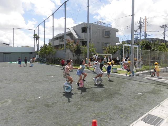 久しぶりの晴れ模様で湿度もそれほど高くないため、多くの子が校庭に出て元気よく遊んでいます。