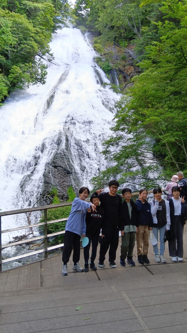 湯滝でグループ写真を撮ったあとハイキングに出発しました。