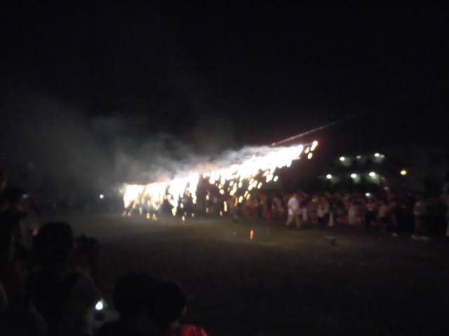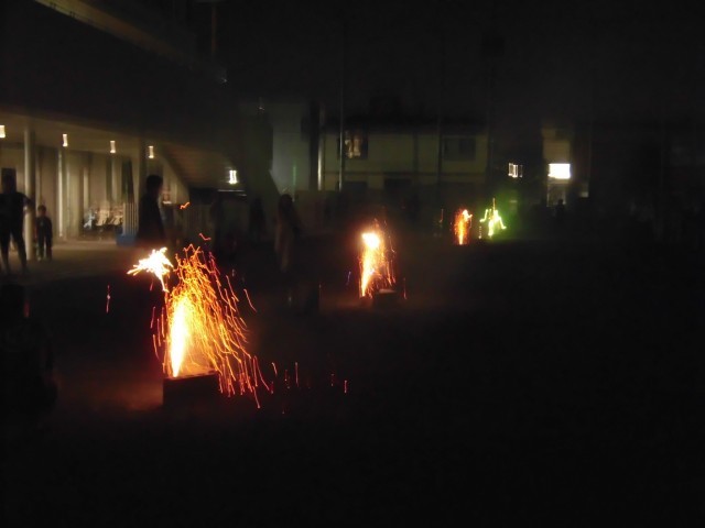 手持ち花火、噴き上げ花火、ナイアガラ花火の3つを楽しむことができ、噴き上げ花火やナイアガラ花火では、途中「おーっ!」という歓声も上がっていました。