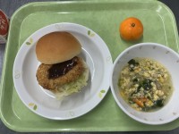 今日の給食は、スパゲティミートソース、フレンチサラダ、巨峰、牛乳です。