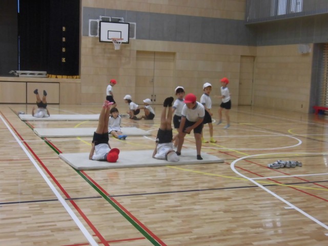 肩倒立は、足がピンと伸びていて、とても上手でした。