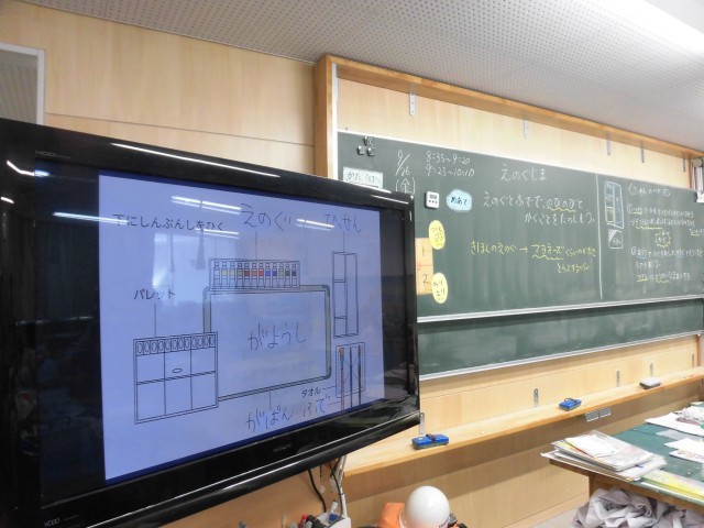 えのぐじまという題材で、めあては「絵の具と筆でのびのびと描くことを楽しもう」です。