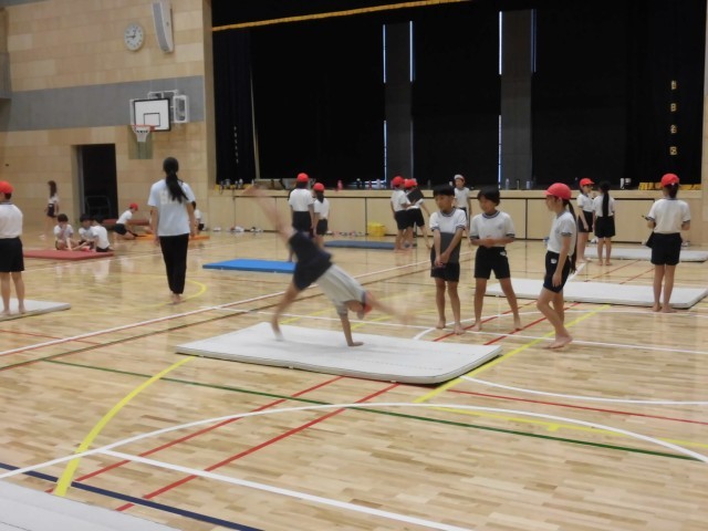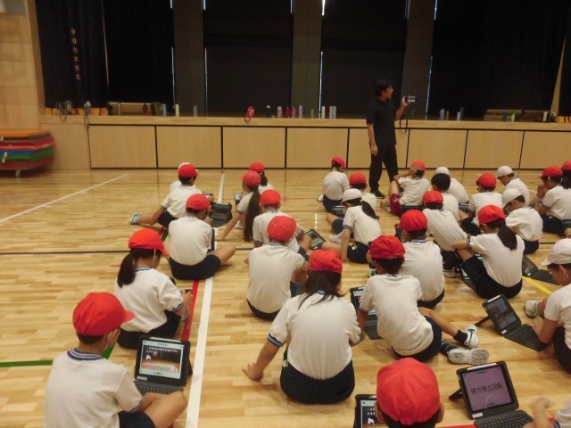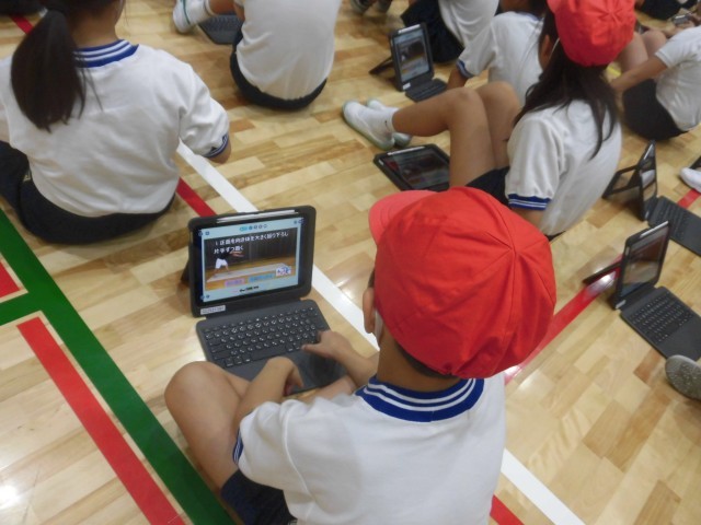 iPadで手本の画像を確認し、グループでお互いの動きを見合いながら練習をしていました。