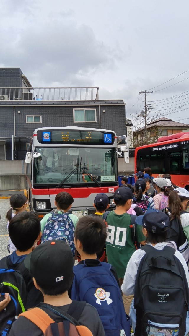 10月9日(木)、今日は3年生のさつまいも掘り体験です。バスで秋山農園さんにおじゃまして、体験をさせてもらいます。