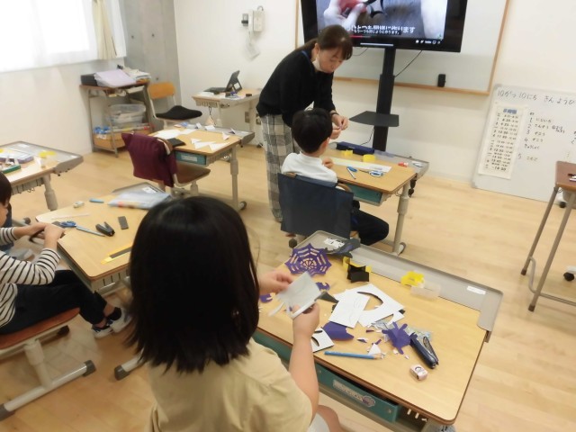 にじいろ学級の低~中学年が図工でかざりづくりをしていました。