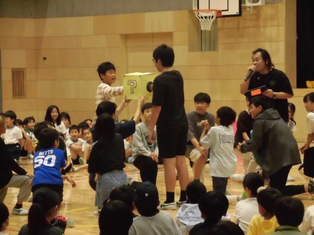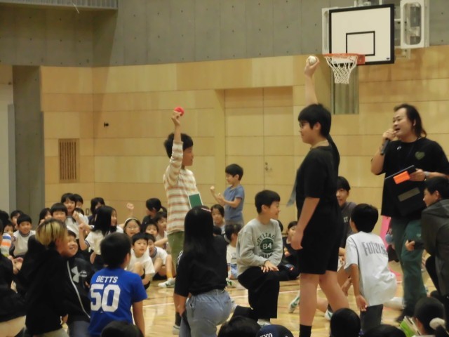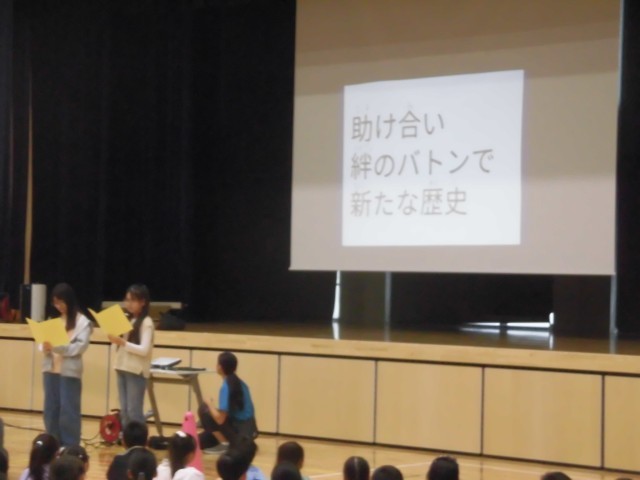 10月14日(火)、全校朝会で運動会のスローガン発表と赤白決めを行いました。