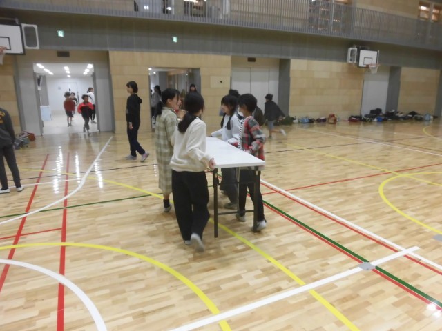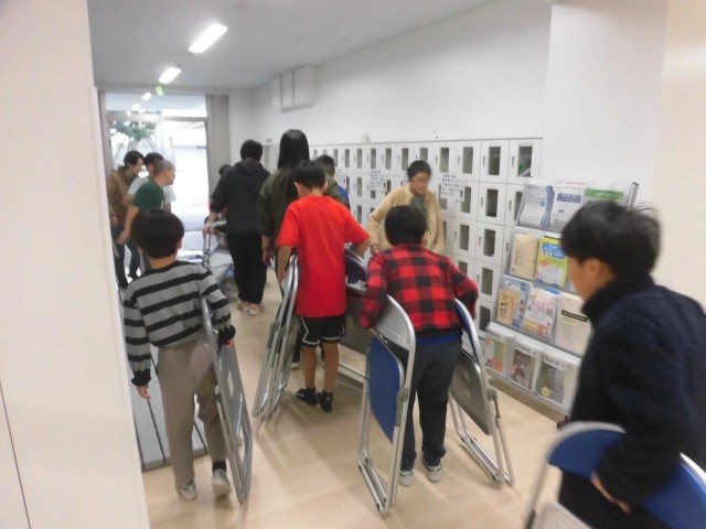 机や椅子出しなどを行っています。ここでも、助け合って一緒に準備を進める姿が見られています。