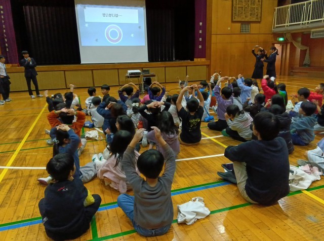 生徒会のメンバーが中心となって明るく元気に迎えてくれました。中学校の紹介のクイズや、中学3年生が実際に勉強している様子を見て、大興奮の2年生でした。