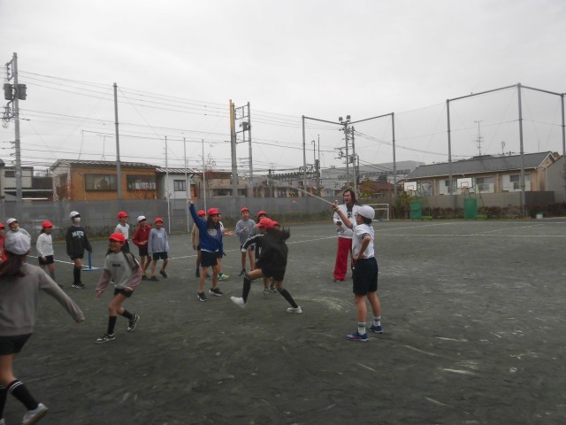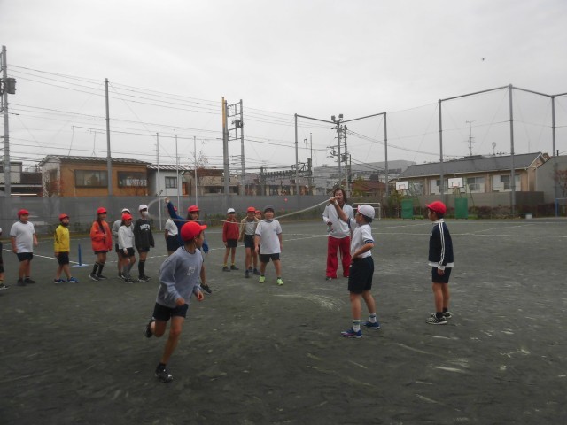 校庭から元気なかけ声が聞こえて来たので見てみると、5年生が8の字長縄跳びの練習をしていました。