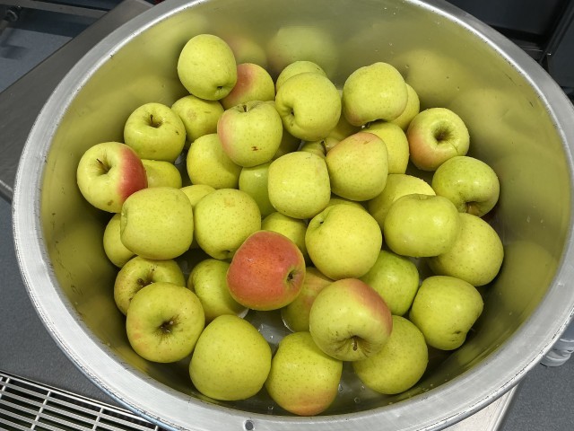 今日の給食は、すき焼き丼、じゃことわかめのサラダ、りんご(ぐんま名月)、牛乳です。