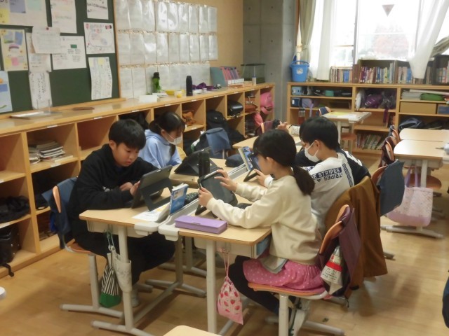 低学年は、お店屋さんのリハーサル。中学年は、合奏の最終調整。高学年は、提示資料の完成を目指して
