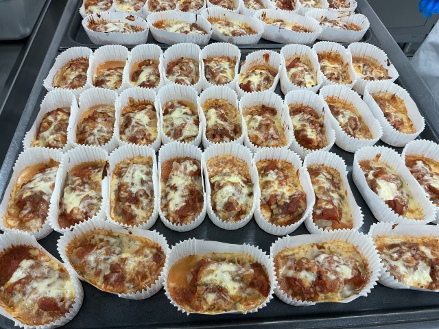 今日の給食は、わかめごはん、すけとうだらのピザ風焼き、五目きんぴら、もやしと油揚げの味噌汁、牛乳です。