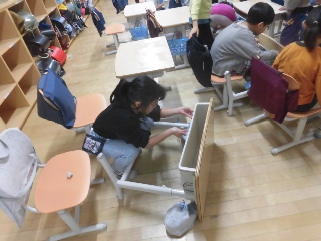 年末ということもあり、机の中や靴箱の中、配膳台、床の小さな汚れなど、