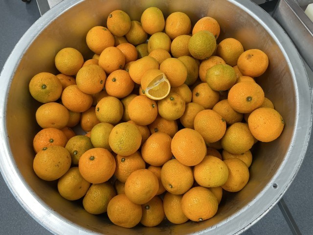今日の給食は、ソフト麺ミートソース、フレンチサラダ、スイートスプリング、牛乳です。ソフト麺をつけ麺スタイルで食べたり、ミートソースをかけて食べたりと、様々な食べ方を楽しんでいるようでした。