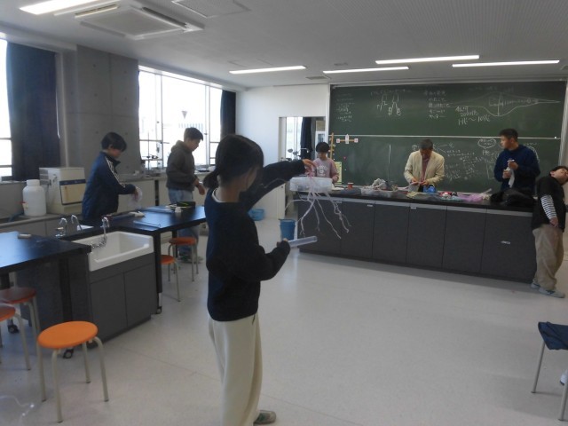 という実験です。どうすれば、静電気の影響を受けやすいかやどうすれば、浮いた状態を維持できるかなどを考えながら取り組んでいました。