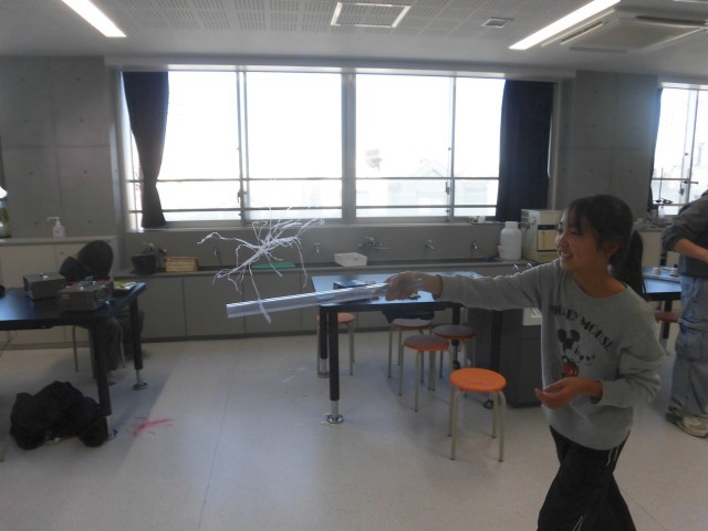 理科室に行くと、6年生が静電気を使った実験に取り組んでいました。