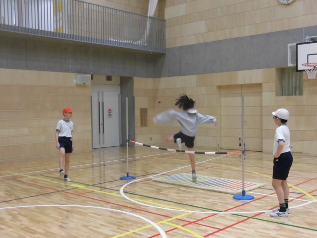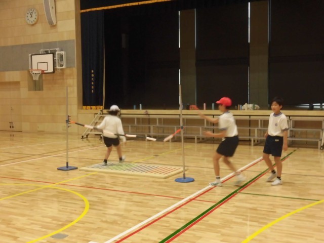 自分たちで、跳べそうな高さに設定し、協力しながら運動していました。